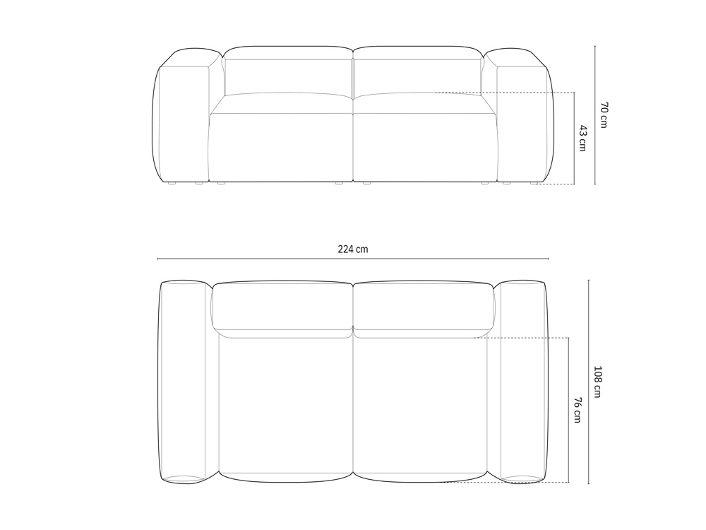 Sitzkissen: Polyurethanschaum 30 kg/m³ + Hochelastischer Polyurethanschaum 30 kg/m³ + Vlies 300 g/m²