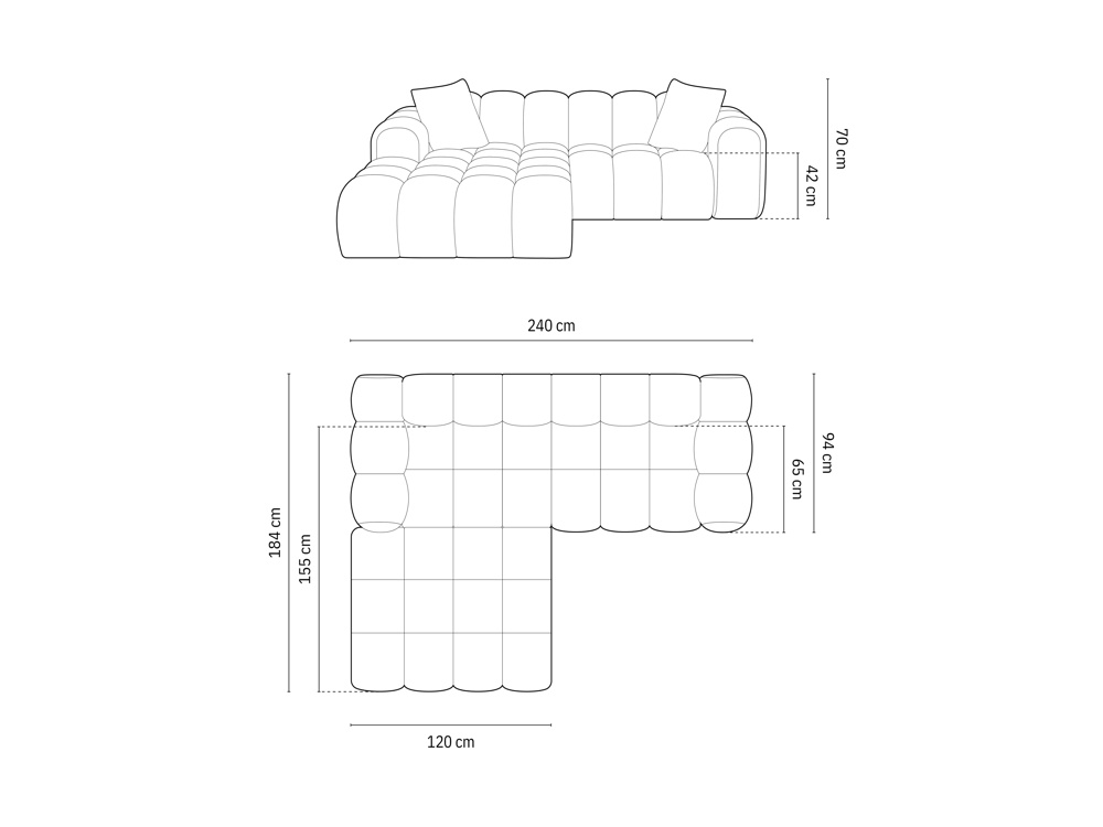 Back cushions: Polyurethane Foam 25 kg/m³ + Wadding 150 g/m²