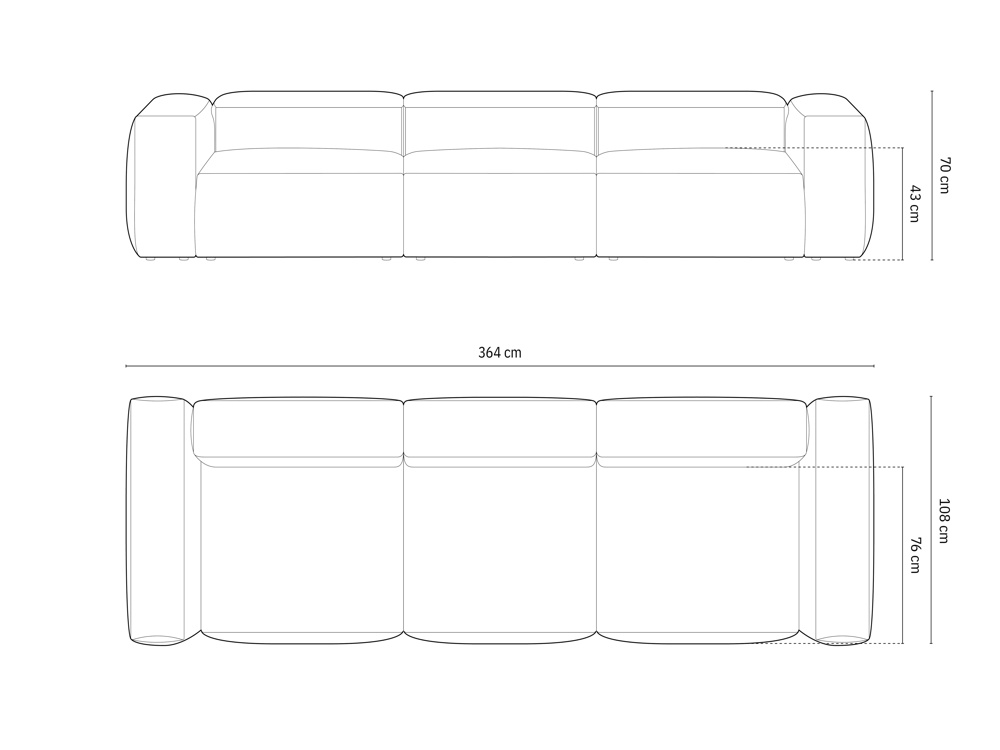 Back cushions: Pianka poliuretanowa 25 kg/m³ + pianka poliuretanowa 23 kg/m³ + włóknina 300 g/m²